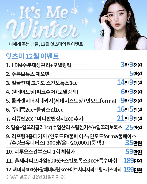 안전하지만 강력한 효과의 대명사 \'쥬비덤\' 필러! 지난 12월 10일 천안 신라스테이 호텔에서 잇츠미의원과 앨러간의 쥬비덤 임상적용 세미나가 개최되었습니다. 세미나의 Speaker로 자리해주신 세종점 조병기 대표원장님의 쥬비덤을 이용한 풀페이스필러 임상적용 강의를, 천안불당점 최종필 대표원장님께서는 쥬비덤을 이용한 턱필러 임상적용 강의를 펼쳤습니다. 잇츠미의원 전지점이 한자리에 모여 각 지점에서 쌓아온 임상 노하우를 서로 공유하며 양질의 치료와 서비스를 제공 드릴 수 있는 방안을 논의하였습니다. 지금의 IT\'S ME가 있기 위해 의료진,직원들의 땀과 정성, 그리고 잇츠미의원을 찾아 주시는 고객님들의 관심과 애정이 있었기에 가능한 일이었습니다. 앞으로도 고객 여러분들의 기대에 부응할 수 있는 잇츠미클리닉이 될 것을 진심으로 약속드립니다. 감사합니다.*본 행사는 코로나 방역수칙을 준수하며 안전하게 진행되었음을 알려드립니다.